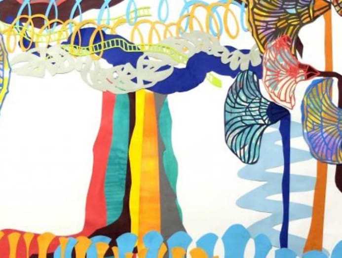 Indeed, i of her other semi-public works, Creators of Tomorrow, which was commissioned in 2022 past JTC to marker its 50th anniversary, and which is displayed at Fusionopolis One@1-North, features cutouts of buildings and colourful organic shapes that portray a lively cityscape chock with optimism.